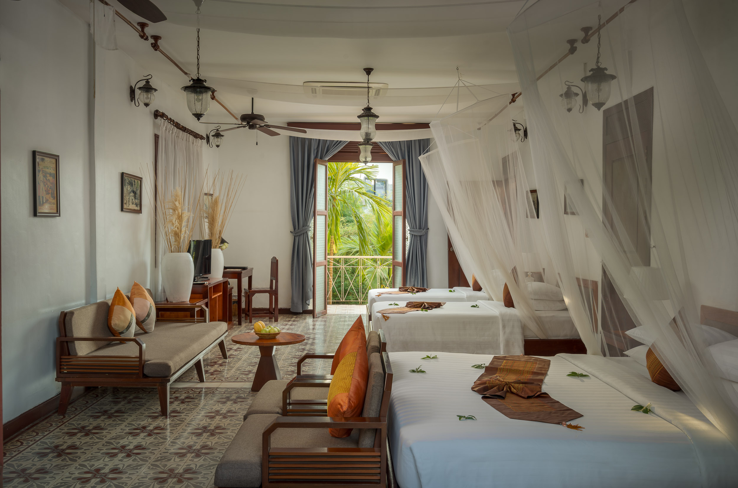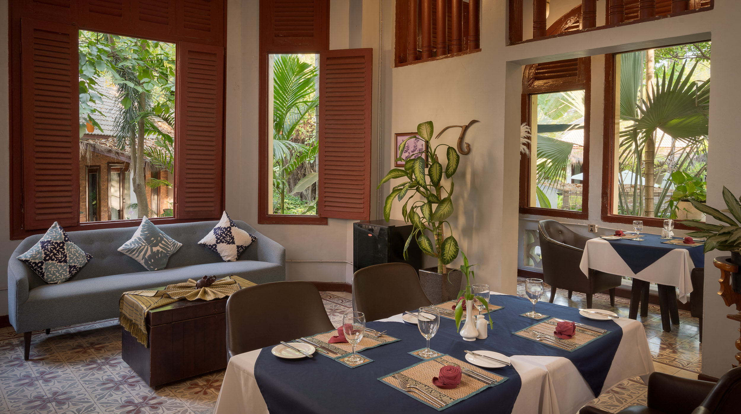 Set along the river in the heart of Siem Reap, La Rivière d’Angkor is a boutique hotel blending early-20th-century architecture with tropical gardens and calm, thoughtfully designed interiors. Our gallery offers a closer look at the spaces that shape your stay – from peaceful guest rooms and shaded courtyards to our swimming pool, restaurant, and heritage dining spaces in Siem Reap.