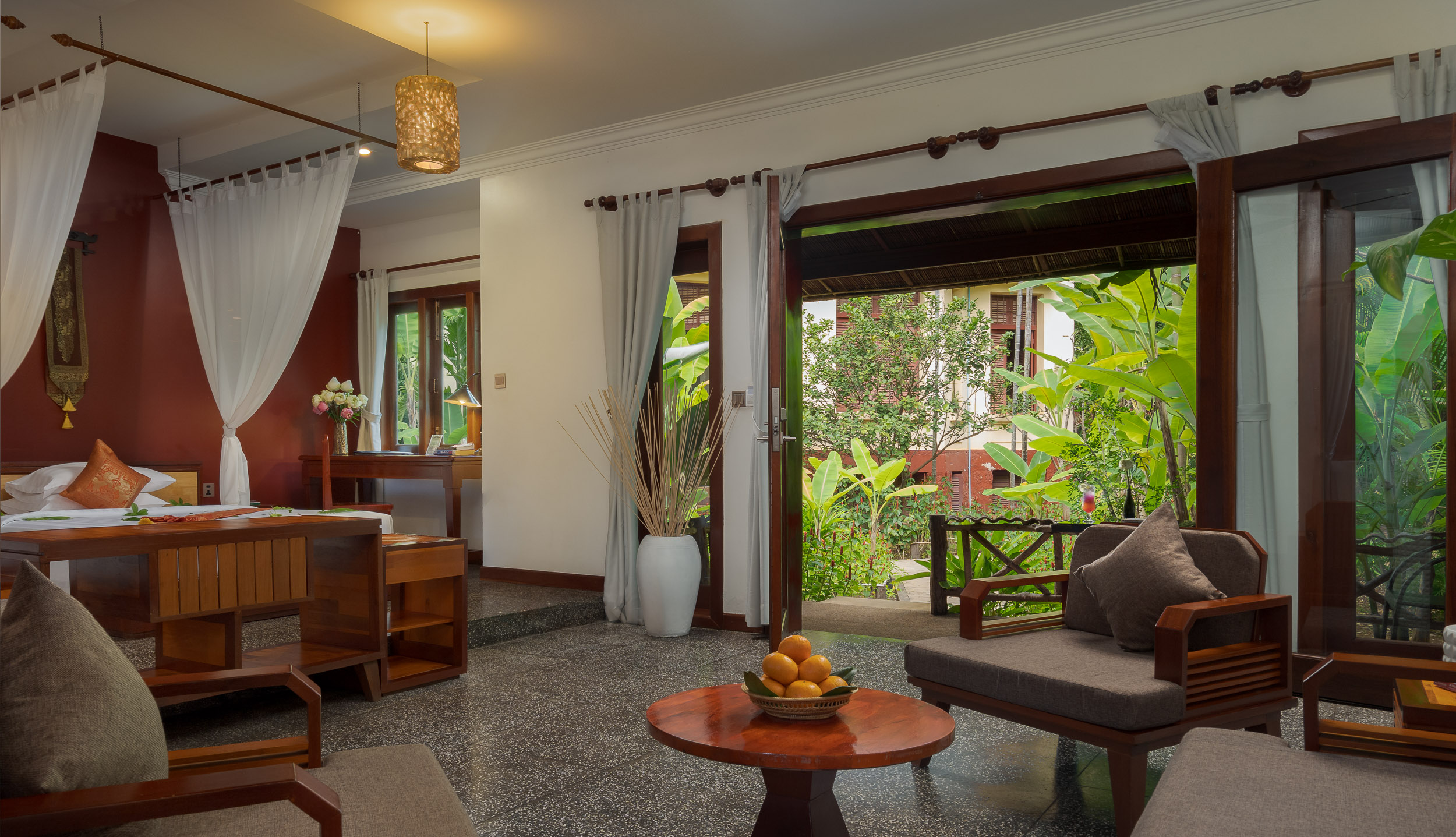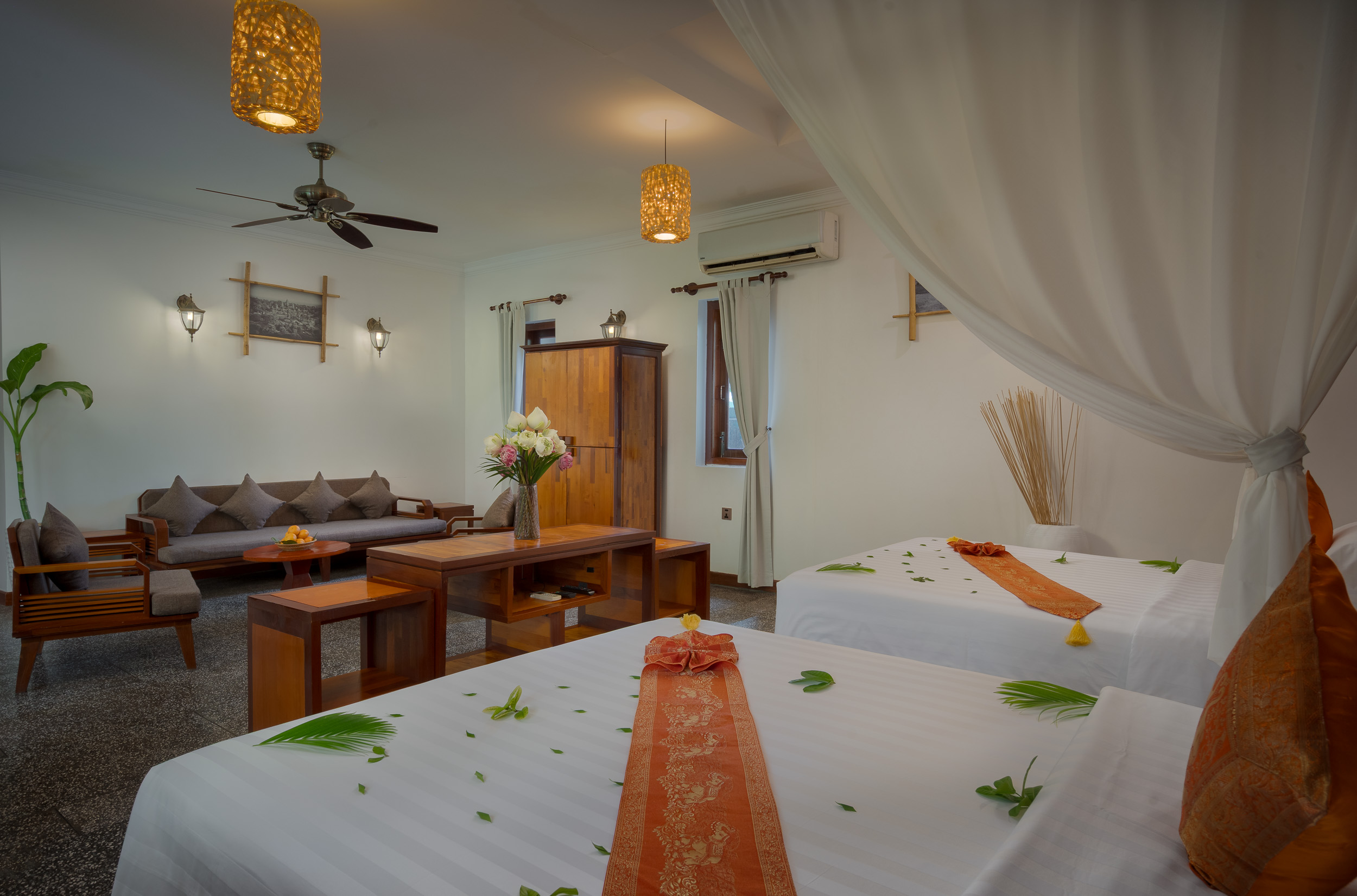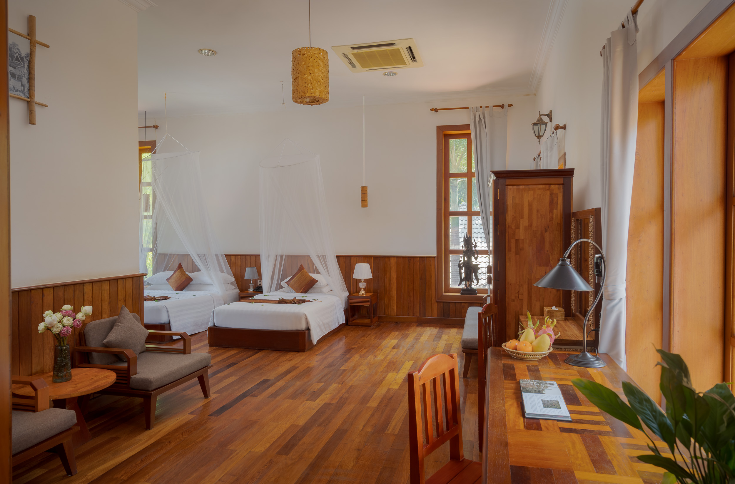 Choose from a selection of spacious guest rooms and suites designed for comfort, natural light, and a peaceful stay in the heart of Siem Reap.
