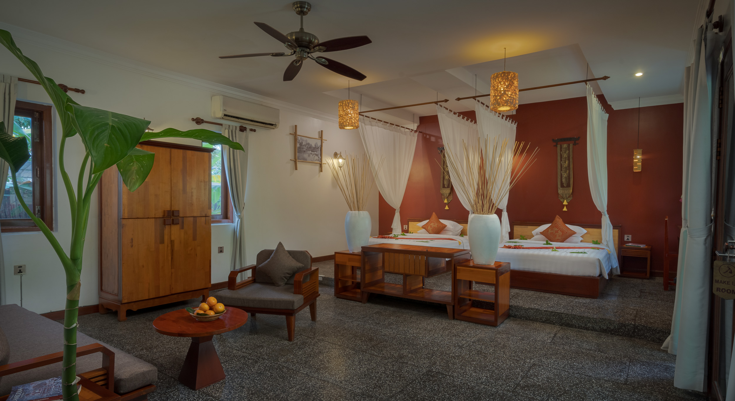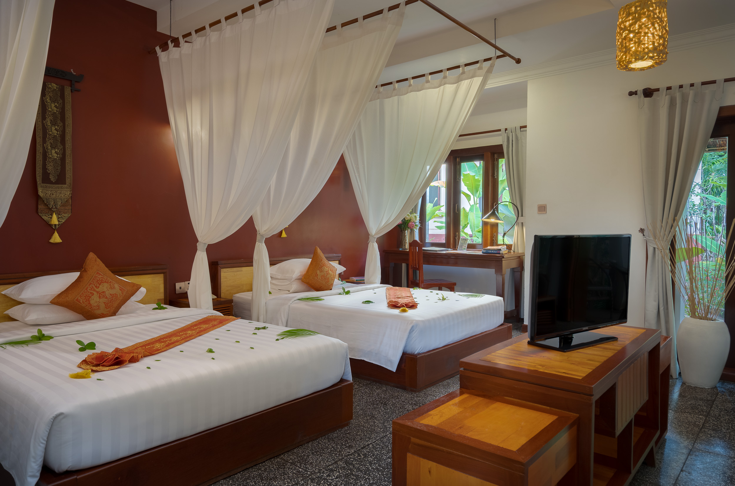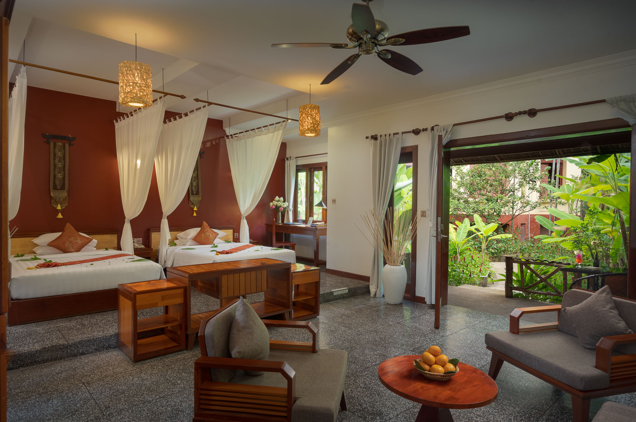 Choose from a selection of spacious guest rooms and suites designed for comfort, natural light, and a peaceful stay in the heart of Siem Reap.